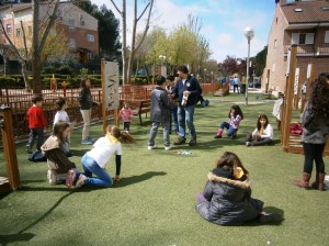 Continuamos juntando tapones para Miklos. Además, con el lluvioso sábado pasado en mente, hoy hemos jugando fuera con más ganas.
