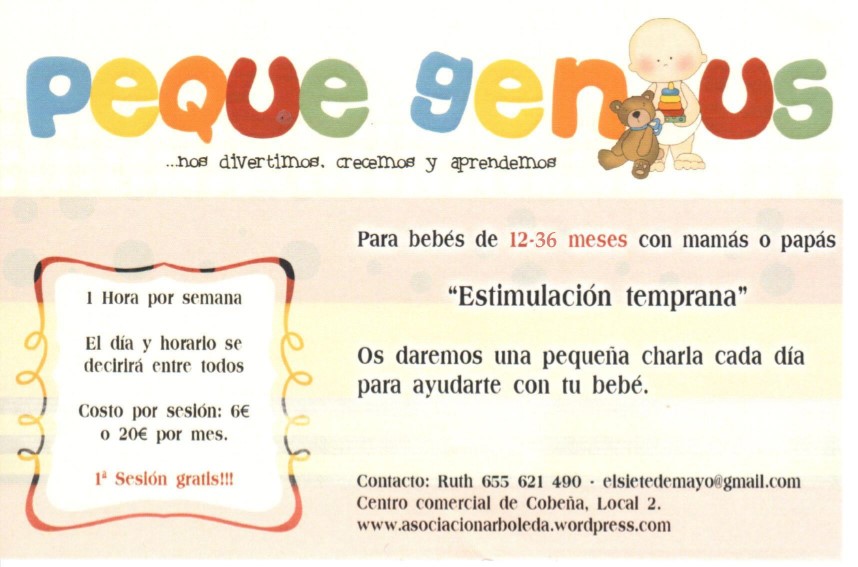 Ya está todo listo para comenzar: Todos los martes, de 11:30 a 12:30 hs en nuestro local. Tienes todos los detalles y un formulario para apuntarte en la página de Pequegenius (pincha).