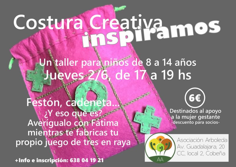 Los talleres de costura creativa son producto del empuje de Fátima, nuestra incansable amiga y voluntaria de la asociación. En sus propias palabras, «nacen del deseo y la necesidad de transmitir todo lo que aprendí entonces de la persona más hermosa que haya conocido jamás: mi mamá». En ellos y a través del aprendizaje de la costura como actividad artesanal, desarrollamos habilidades tales como la motricidad fina, la concentración y la imaginación, inspirando el espíritu creativo. Estas actividades pueden realizarse en familia, entre amigos o de manera individual, con respeto y compañerismo, valorando siempre lo que cada uno como individuo puede aportar y aprendiendo a transmitir lo que nos acaban de enseñar.