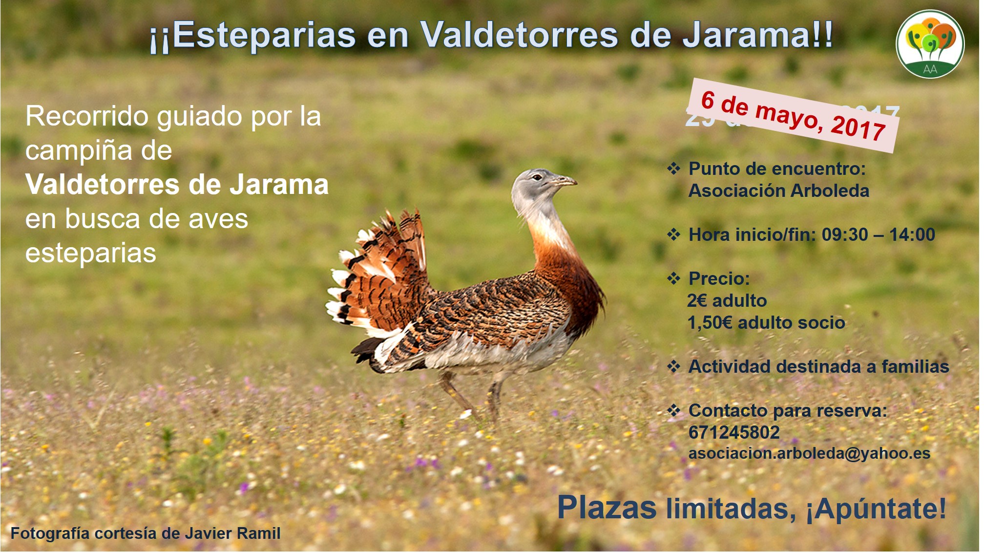 Como en anteriores salidas, contaremos con la guía de Nathan, experto observador y miembro de la SEO (Sociedad Española de Ornitología). Nos encontramos el sábado 6 de mayo en el local de la Arboleda. Comenzaremos a las 9:30 con una presentación visual de las posibles especies a encontrarnos. Luego nos desplazaremos en coches particulares hasta el polígono industrial de Valdetorres, desde donde iniciaremos nuestro recorrido a pie. Estimamos permanecer allí hasta las 14 h.
