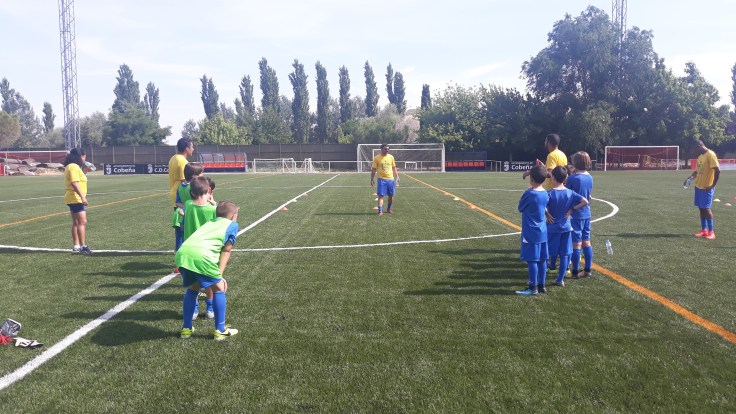 Los atletas de la de la Brazil Soccer Academy realizaron el jueves un clínic sobre conducción y cesión del balón con práctica diferencial para porteros en el campus de fútbol del C.D.Cobeña, además de algunos juegos de calentamiento. Para finalizar, un partido por diversión.