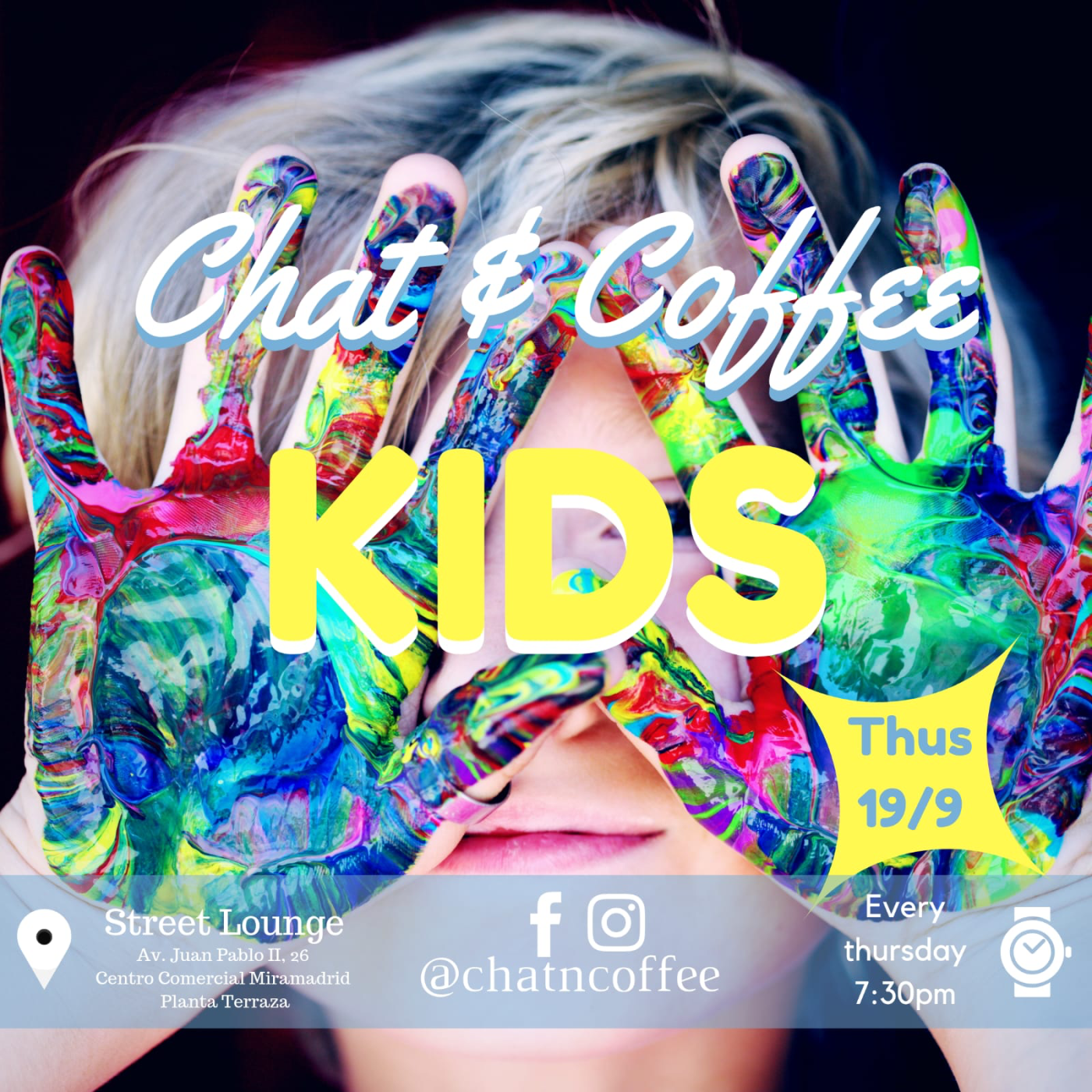 Chat & Coffee existe desde enero de 2017 con el fin de practicar inglés entre vecinos y este año, después del éxito del English Camp del pasado verano, abriremos un grupo llamado «Chat & Coffee KIDS» para niños de 5 a 11 años en el mismo lugar y a la misma hora de Chat & Coffee para adultos.