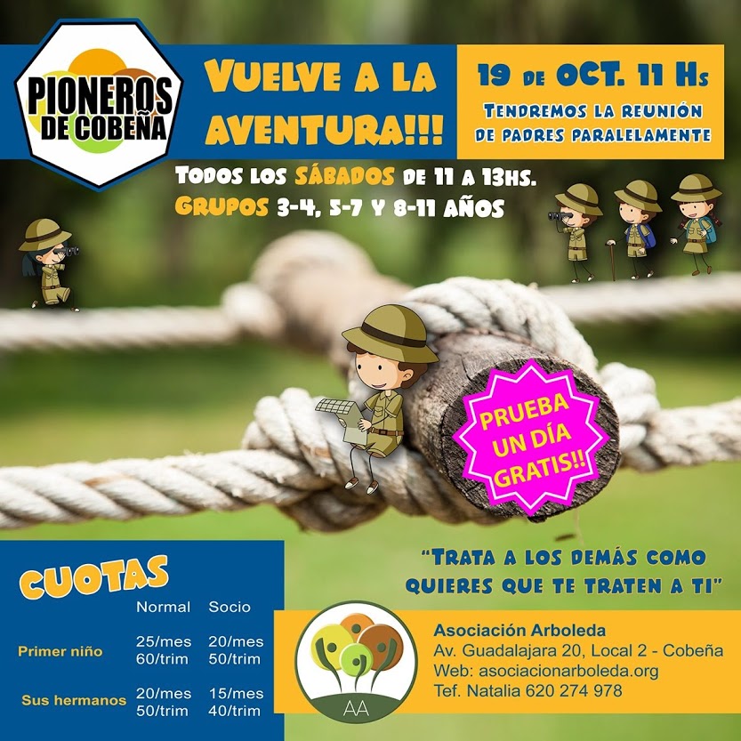Quienes continúen del curso pasado necesitan avisar para reservar plaza. Quienes quieran apuntarse por primera vez o tengan preguntas, pueden entrar en contacto con nosotros o rellenar el formulario que se encuentra en la página de Pioneros de Cobeña. En cualquier caso, todos están invitados a la reunión informativa prevista para aclarar todas las dudas.